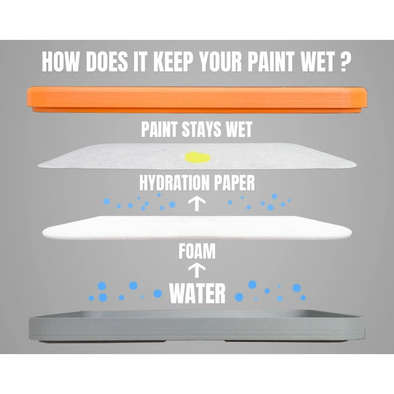This hydration paper is the perfect match for our foam. It sticks on it, and does not create bubbles. 100% of the paper is in contact with the foam, for perfect hydration. It will not curl after the easy setup. It was particularly selected to offer the best performance with hobby paints and level of dilution used in hobby painting.