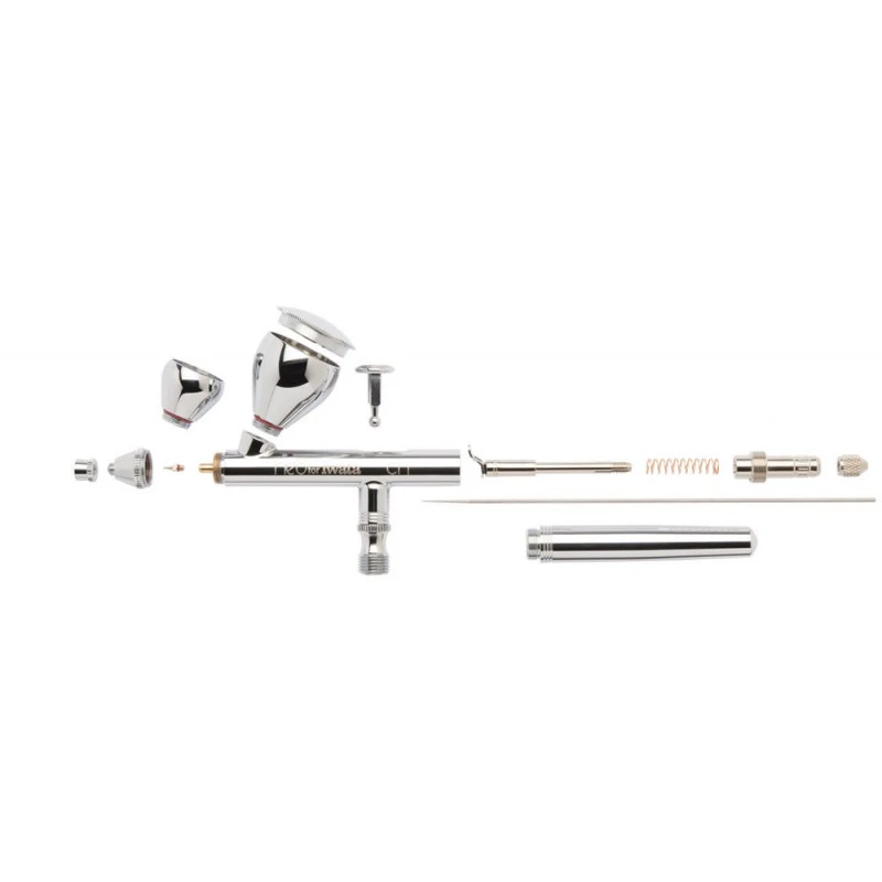 Ce pistolet aérographe HP-CN est un aérographe qui est équipé d’une buse de 0.35 mm haute performance pour les petits détails et avec une largeur de jet moyenne.