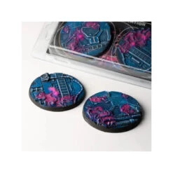 This blister contains 2 thermoplastic 60mm wide round Battle Ready Bases, in an Alien Infestation theme.