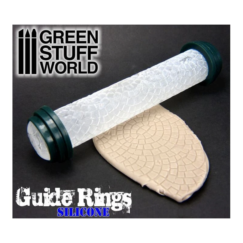 Il suffit de placer les anneaux de l’épaisseur de mastic ou de l’argile nécessaire à l’extrémité du rouleau, rouler le rouleau jusqu’à ce que les anneaux guide touchent la surface de travail.