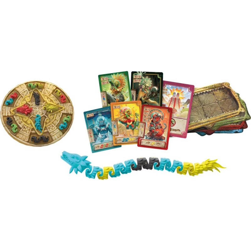 Lorsqu’un joueur complète son troisième Cóatl, les joueurs reçoivent des points pour la réalisation d’objectifs. Celui qui en a cumulé le plus est déclaré grand prêtre aztèque !