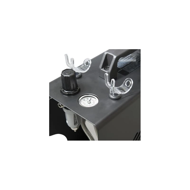 Le compresseur est similaire au TC-610H mais avec des fonctionnalités améliorées d’un boîtier métallique encore plus protecteur et l’ajout de 2 supports d’aérographe détachables pour la commodité des utilisateurs. Comme le TC-610H, il offre le débit d’air le plus élevé de la série Achieve, un débit d’air presque doublé qui peut répondre aux besoins des amateurs d’aérographe et des professionnels, et dispose d’un système de réservoir d’air qui aide à fournir un débit d’air constant avec des pulsations minimales. Il s’agit d’un compresseur monocylindre.