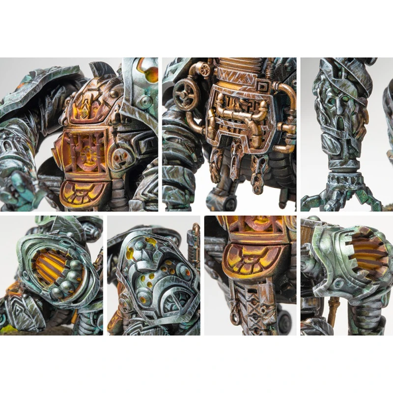 Some Dweghom manifest so much of their Elemental Gift, they must master it or be consumed by it. Few Have the skill, will or dedication needed to become Sorcerers. In fact, most Dweghom elect to install techno sorcerous grafts that allow them to harmlessly vent their excess power. Steelforged pilots are recruited from amongst these individuals who possess a Gift for both Elements: their excess Primordial Fire and Earth channeled through their grafts and into these towering steel automata. Countless foes have been cut down expecting a lumbering clankingbehemoth, only to be confounded by the speed and power of these deadly automata. How they Play: The Steelforged are the Dweghom’s answer to the age old question of “quantity or quality of Attacks?”. With the Flux-Powered Rule Steelforged are capable of switching from one mode of Attack to the other whilst their naturally high Defense stats allows them to withstand even the most violent of onlsaughts!