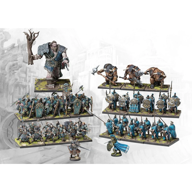 2 player Value Starter Set for The Last Argument of Kings – City States vs Nords. City States Army contains Minotaur Set of 3, 12 Phalangates (phal-an-gee-tes) 12 Hoplites, and 1 Exclusive Alt Sculpt of the Polemarch. Nords army contains 1 Mountain Jotnar Monster, 12 Huskarls, 12 Bow Chosen and an Exclusive ALt Sculpt of the Konungyr (cone-un-gear). This set comes with 2 Last Argument of Kings 2.0 Rulebooks, all bases and stands, the 10 Command Cards to start your deck, your assembly manuals, and Path of Conquest guides. Everything 2 players need to start their Conquest!