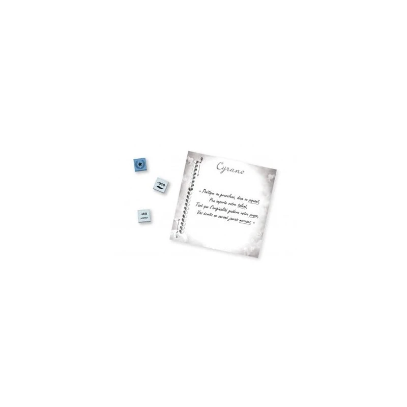 Lancez 2 dés Rime et 1 dé Thème, créez un poème en 4 lignes en faisant preuve d’originalité dans vos rimes, et de bon goût dans le choix de votre poème préféré afin d’unir le plus de cœurs. Inspirez l’Amour à un couple qui, tel Roxane et Christian, s’aimera grâce à votre gouaille.A chaque tour, piochez et lancez 2 dés Rime et 1 dé thème.