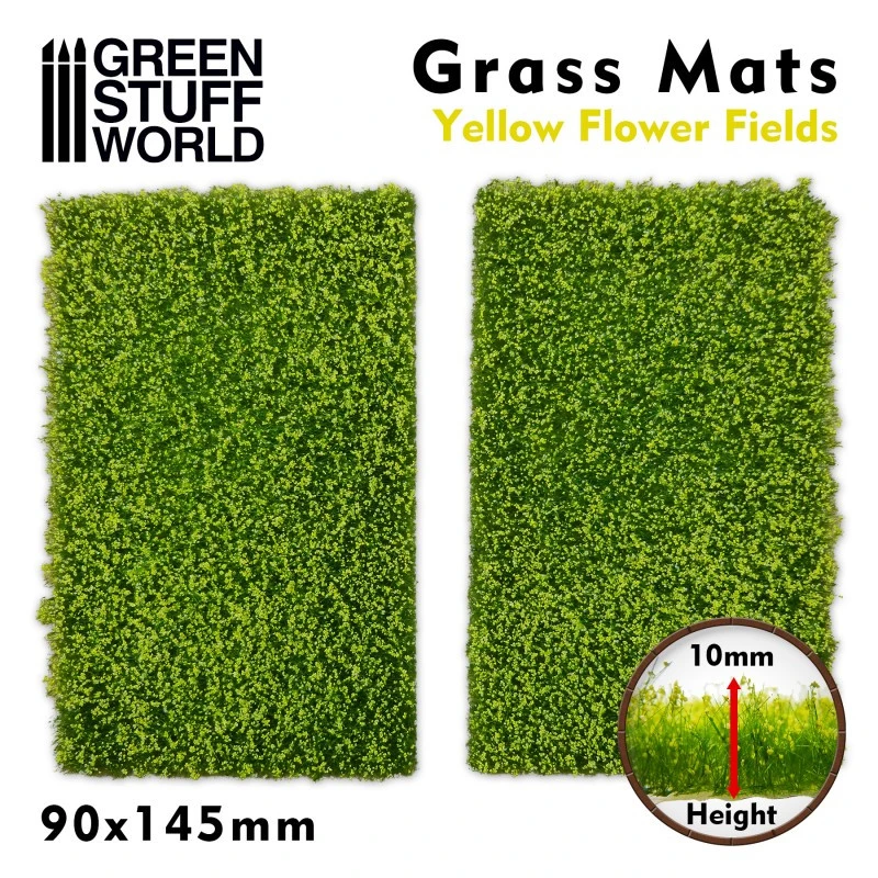 Tapis d’herbe découpé pour définir instantanément une grande surface pour la création de paysages, en particulier pour les jeux de guerre. Les tapis d’herbe sont disponibles dans différents styles et peuvent être complétés par l’ajout de diverses couches de feuillage, de touffes et d’arbustes pour un cadre très réaliste.