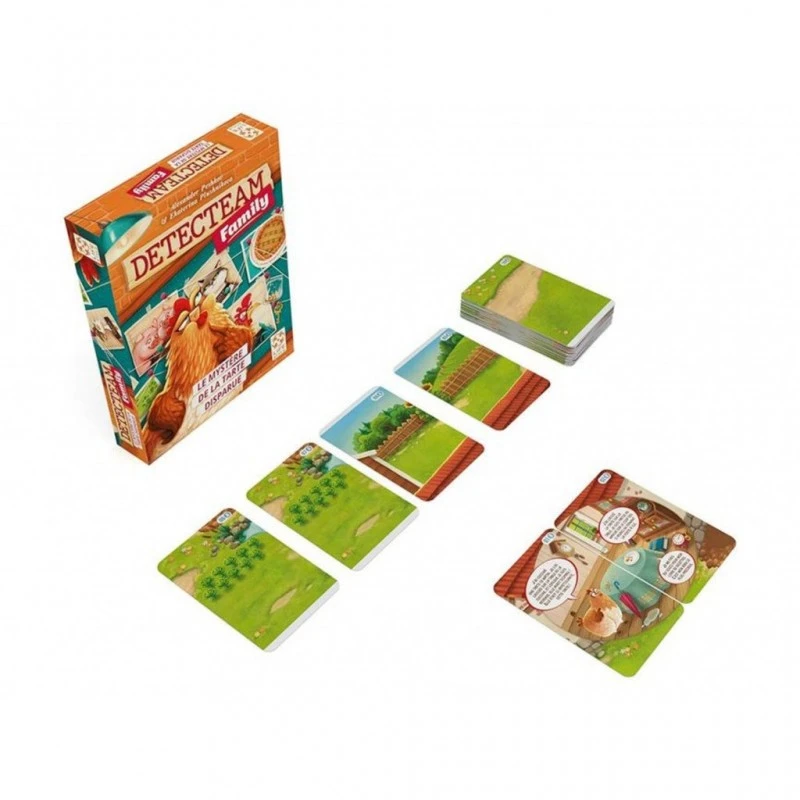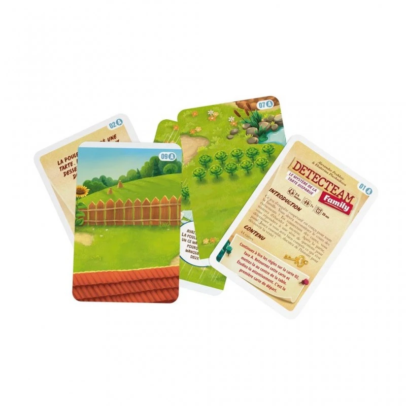 Le Mystère de la Tarte Disparue est une enquête coopérative pour toute la famille. Connectez les cartes contenant des informations importantes pour reconstituer le puzzle ! Soyez attentif aux détails ! Parlez aux animaux de la ferme et découvrez ce qu’ils savent ! Attention aux fausses pistes, vous devez décider quelles cartes peuvent vous aider à résoudre l’affaire de la tarte disparue…