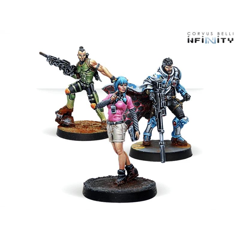 Si vous aimez simplement collectionner des figurines, vous ne pouvez pas manquer la boîte de figurines Outrage – mais si vous préférez le jeu compétitif, voici une bonne liste de profils Infinity à jouer aux côtés de vos figurines Dire Foes : Le set Brawlers, l’équipe de choc Druze, le tag mercenaire Anaconda et les Alguaciles de Corregidor.