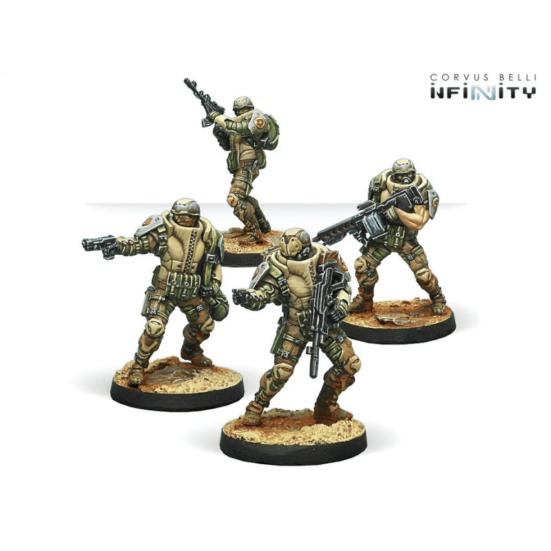 An Infinity unit box that provides all the weapons options needed. Now you can compose a Fireteam of these Medium Infantrymen in the Qapu Khalqi Sectorial Army. The Djanbazanforms the Special Assault Corps of the Security and Intelligence force. Their versatility, theirMultispectral Visor and their Regeneration Special Skill make them a tough adversary.