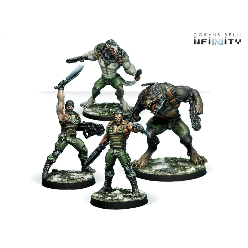 A new Infinity unit box and a highly desired re-sculpt! We know the Dog-Warriors have a really cheap game points Cost and the Ariadnan players usually field two, as these hybrid shock troopers are awesome fighters when engaged in close quarters battle. By this reason they are released in pairs (two Dog-warriors and two Dogfaces), so players can save money. Anycase, when you see the amazing re-sculpt you will not care about price, because you will be eager to get these savage werewolf-like troopers! Feel the fury of the Dog-Warriors!