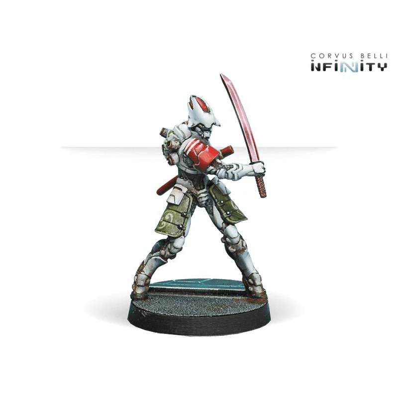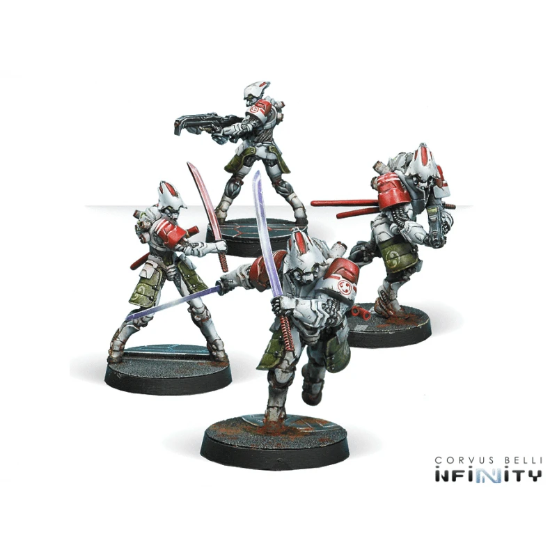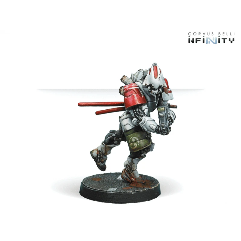 High-tech samurai! This box provides all the weapon options you know. The Domaru are Kenjutsu masters wearing heavy powered armour. Specializing in Close Quarters Combat, they can sweep the battle zone with their Chain Rifle, eliminate any advanced foe with E/M grenades or engage in blade-to-blade combat with their katanas.