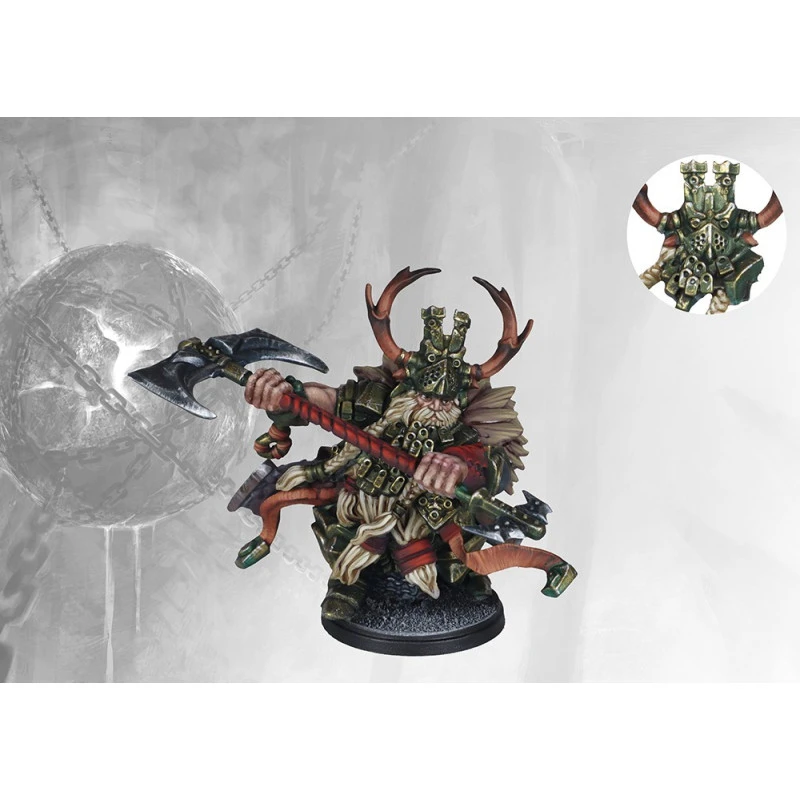 Thus, when one encounters a Raegh, one knows he stands across one of the most capable fighters in a Hold, ruthless enough to have crushed all opposition so that his assent was assured, or talented enough to defend himself against all comers, while simultaneously rising through the ranks. Unfortunately for the Dweghom race as a whole, and their neighbors, this process seldom encourages skills and virtues such as diplomacy, compromise and patience… To most Dweghom this is just as well, providing more chances to take the field of battle and earn more Aghm. This is a new plastic miniature with an updated sculpt.