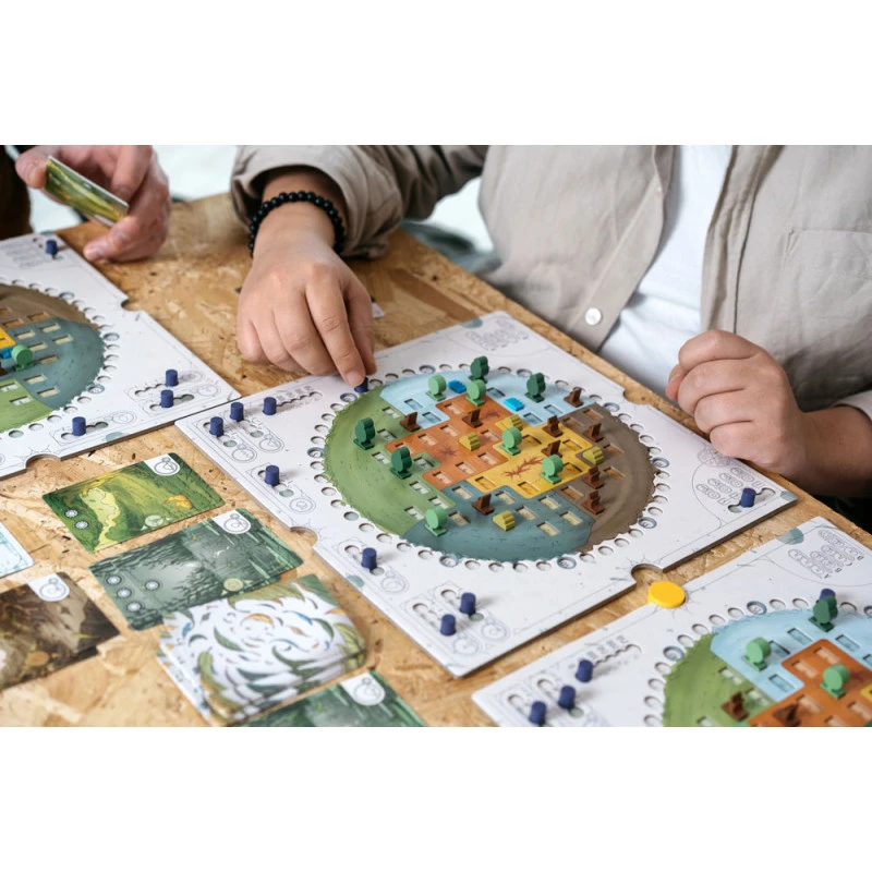 Vous choisissez des cartes de biome dans un pool commun pour déterminer quelle région de votre planète vous allez développer dans un tour. Les cartes non choisies rendent ces régions plus fertiles, et donc plus précieuses.