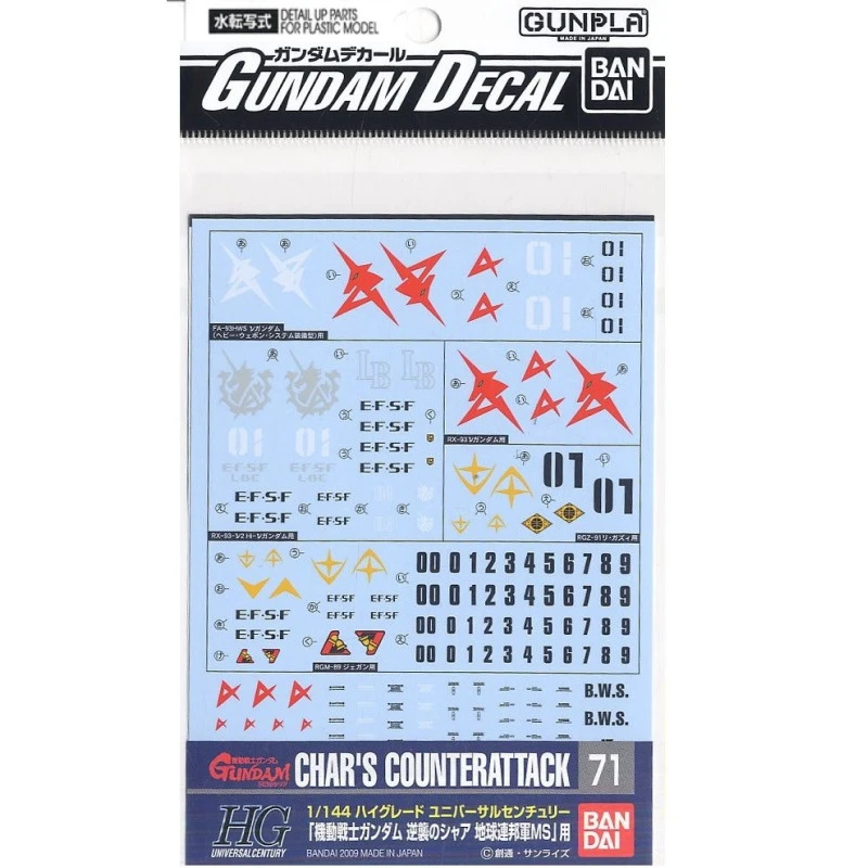 GUNDAM GUNPLA DECAL HG 1/144 71 CHAR S COUNTERATTACK EARTH