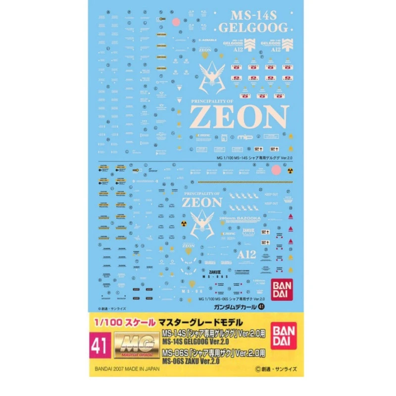 GUNDAM GUNPLA DECAL MG 1/100 41 CHAR S ZAKU GELGOOG V2