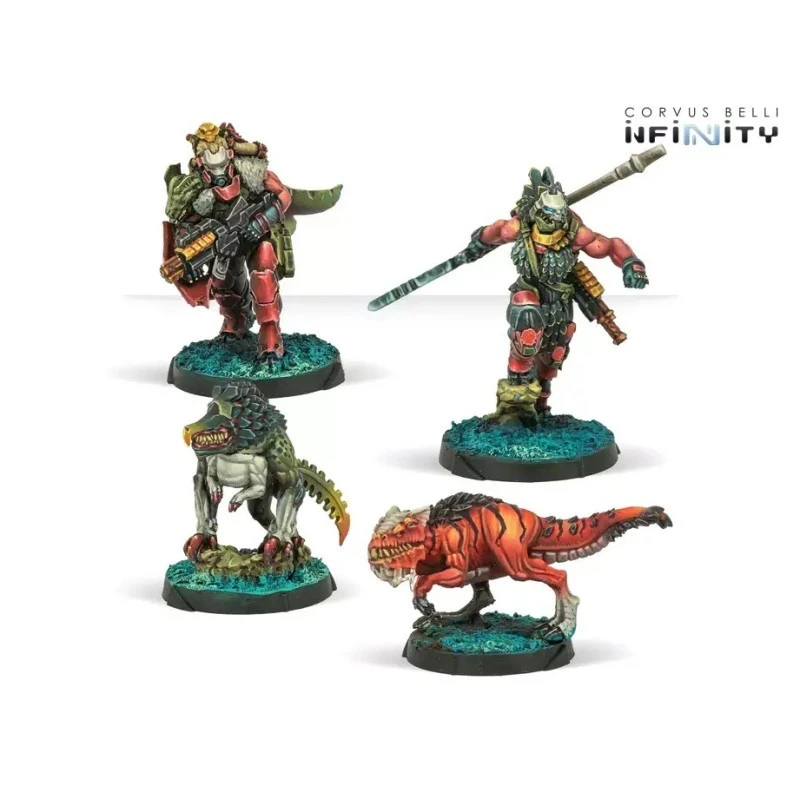 Cette boîte contient 4 figurines : 1 Oznat avec Vulkan Shotgun, 1 Tyrok Hunter avec T2 Rifle, 1 Preta Sync et 1 Skurgot Jawbrute.