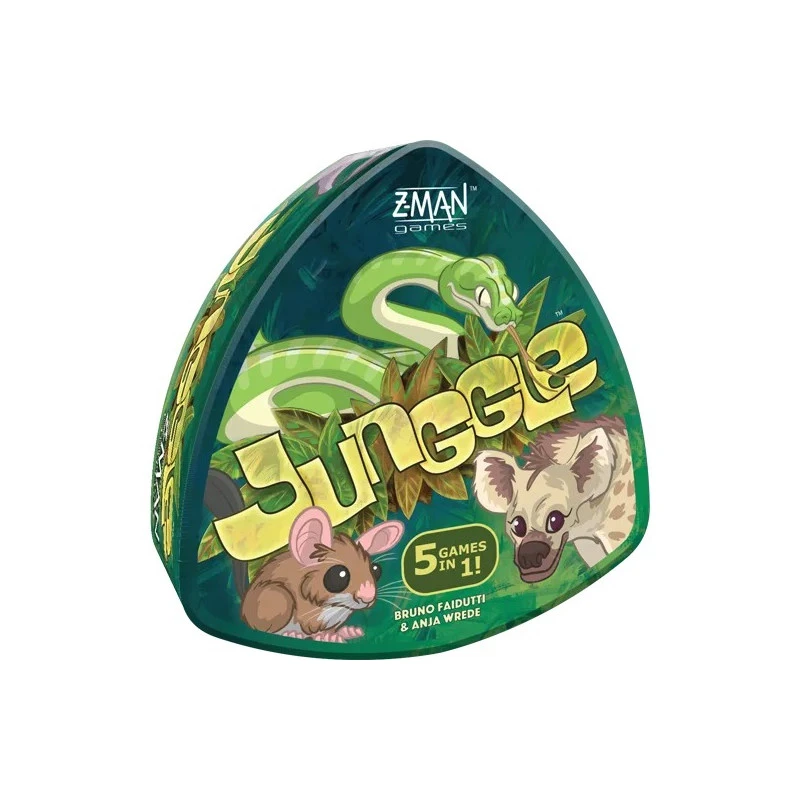 Jeu de mémoire, de bluff , d’adresse et de réflexes, Junggle contient 5 jeux, rapides et simples. Retrouvez en premier l’animal de plus haut rang et qui n’est pas effrayé, capturez un animal au point d’eau, et bien d’autres qui feront appel à votre sens de l’observation ou de la réflexion. Pour chaque envie de partie, il y a un jeu Junggle !