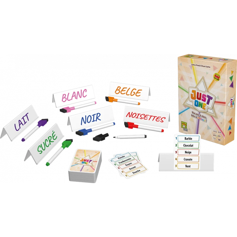 Un joueur doit deviner un mot sur une carte. Pour ce faire, les autres joueurs vont écrire un indice sur leur chevalet. Celui qui devine garde les yeux fermés pendant que les autres comparent leurs mots. Si deux mots sont identiques, on les efface !