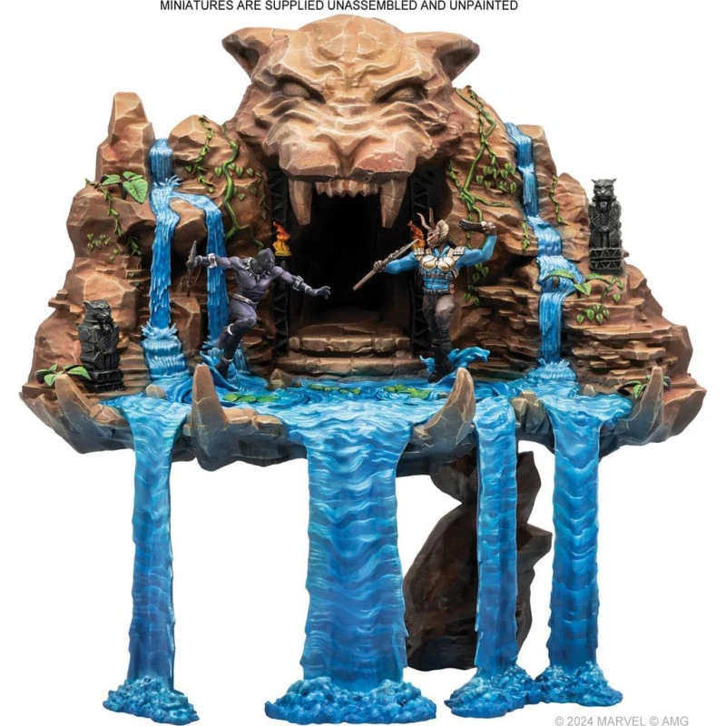Les nouvelles versions de T’Challa et de Killmonger s’affrontent pour le trône sur un terrain en forme de cascade magnifiquement sculptée qui peut être personnalisé avec 4 pièces de plantes optionnelles.