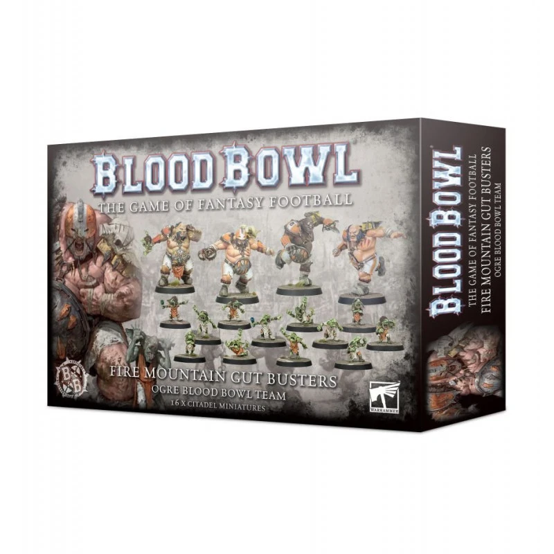 Ce kit plastique kit contient tous les composants nécessaires pour assembler les Fire Mountain Gut Busters, une équipe d’Ogres destinée aux parties de Blood Bowl. Elle comprend 4 Ogres (dont 1 pouvant être monté en tant que Runt Punter), et 12 Gnoblars aux têtes interchangeables! Sont également fournis une feuille d’équipe, des décalcomanies, 2 pions de tour et 2 pièces, 4 ballons à thème ogre, 14 socles ronds de 25mm et 4 socles ronds de 32mm.