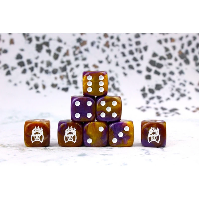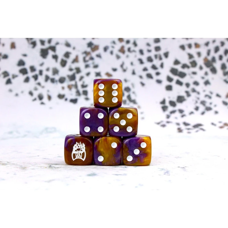 Do you hear the whisper that will soon burgeon to become a storm? These contain a mixture of tarnished golds and coppers swirled with deathly purples and inlaid with a easily readable white; resin 16mm dice. The symbols are on the ONE side. Yes, the ONE side.