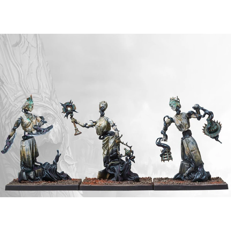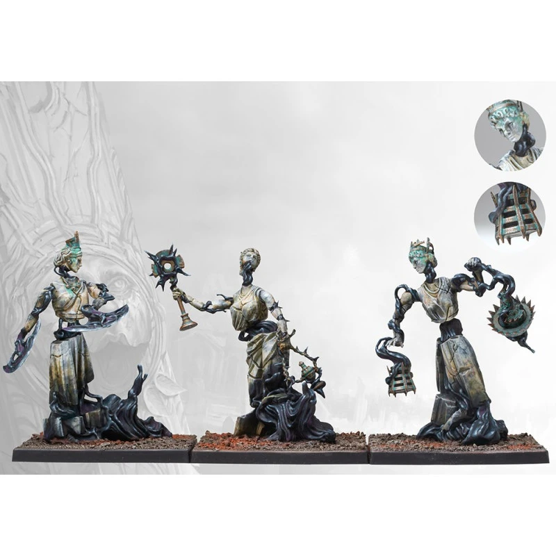 Deep within the great temples of Capitas, one could find the Telestria, great halls in which people were initiated into the mysteries of Hazlia’s cult. Ringing these richly appointed halls, dozens upon dozens of Kanephors stood guard, bearing the bounty and gifts their lord would shower unto Hazlia’s new initiates. In a dark parody of their former role, these terrifying animate constructs can be unleashed upon the battlefield to deliver their god’s last gift: Death.