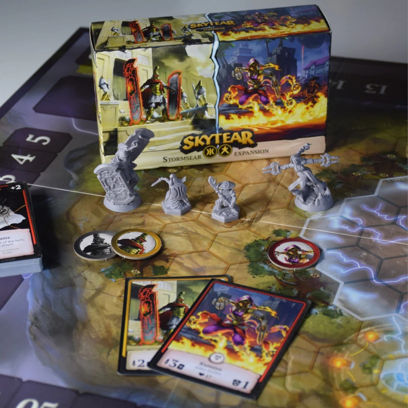 Stormsear est une extension avancée qui vous aide à mélanger des héros rouges et jaunes dans la même équipe. Stormsear est recommandé aux joueurs possédant déjà les extensions de faction Kurumo et Nupten.