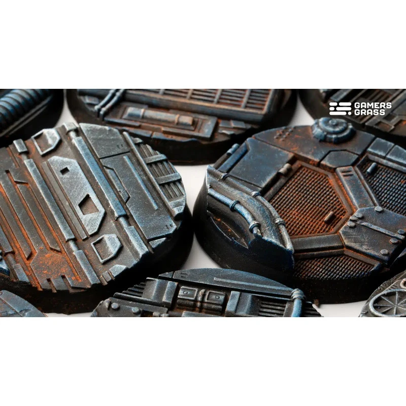 Rusty metal floors, exposed wiring, and broken equipment scattered around. Each base is carefully crafted to transport your miniatures to a sci-fi industrial world, challenging them to explore the hastily abandoned corridors of an old derelict spacecraft.