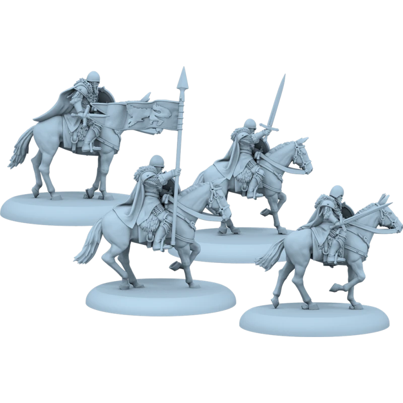 Bien qu’ils ne soient pas équipés pour de longs corps à corps, les Cavaliers de la Maison Stark se retrouvent rarement en mauvaise position. Ils se caractérisent par une mobilité sans pareille, grâce à leurs armures légères et leurs chevaux non bardés, entraînés à conserver leur calme et à galoper.