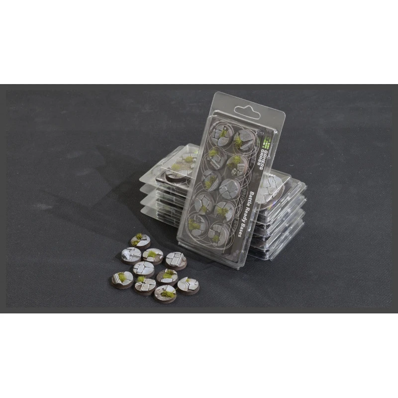 This pack contains 10 round Battle Ready Bases 25mm wide in a temple theme.