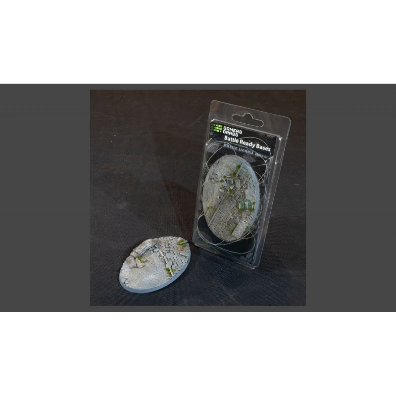 This pack contains 1 oval Battle Ready Base 105mm wide in an urban warfare theme.