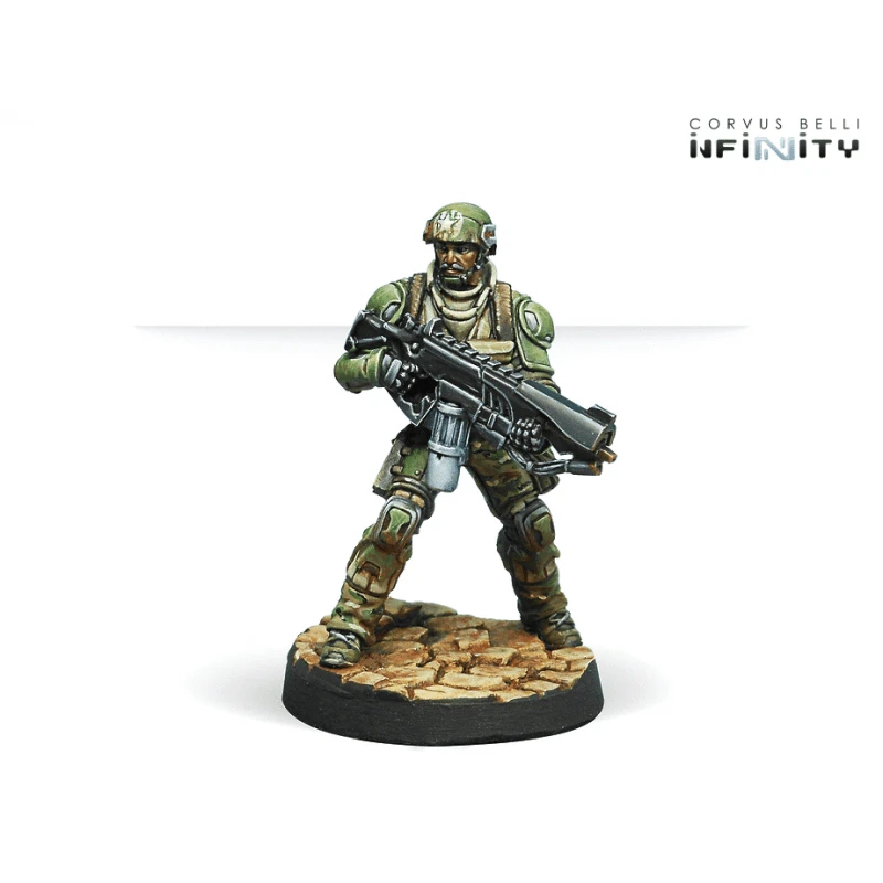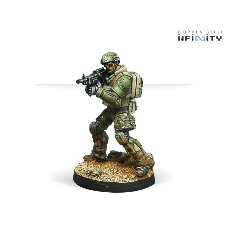 An Infinity unit box that provides all the weapons options needed. This is a completely new and stunning release of these Ariadnan line troopers. Now you can compose a Fireteam of these Medium Infantrymen in the USAriadna Sectorial Army. The Grunts are the backbone of the USARF and they compose a tough force able to combat whatever the USAriadnan settlers be unable to fight off themselves.