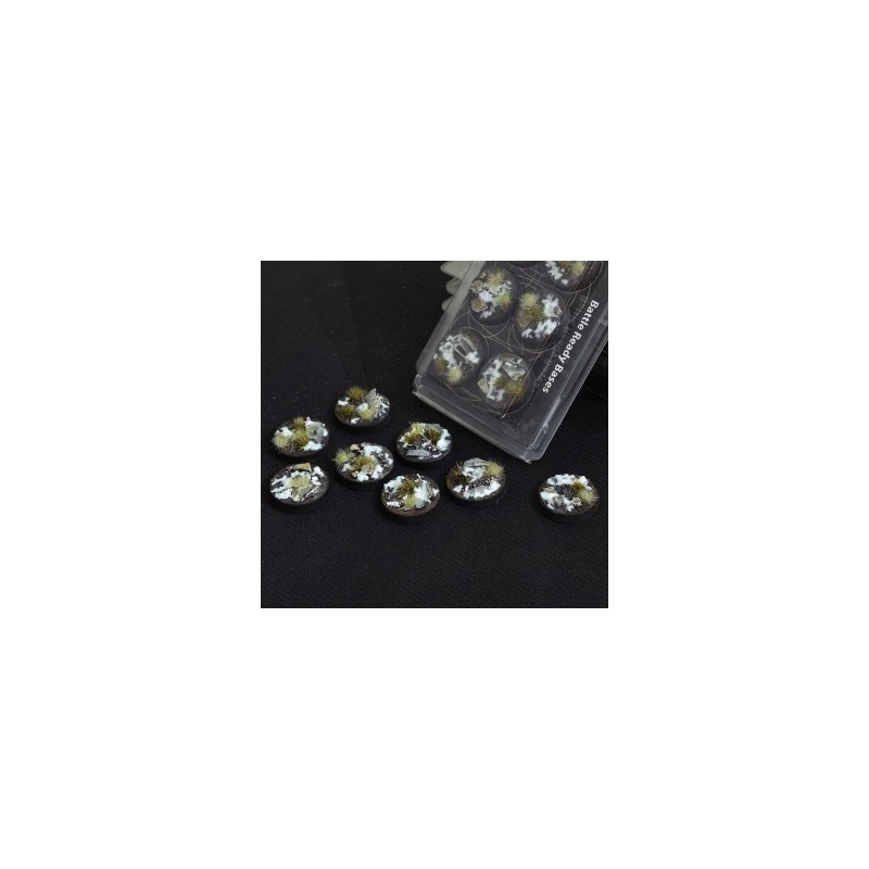 This pack contains 8 round Battle Ready Bases 32mm wide in a winter theme. All Battle Ready Bases are sold already painted and finished by hand.