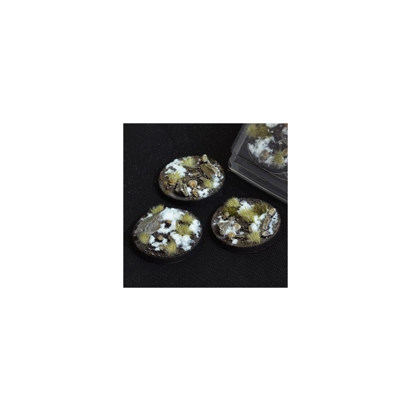 This pack contains 3 round Battle Ready Bases 50mm wide in a winter theme. All Battle Ready Bases are sold already painted and finished by hand.